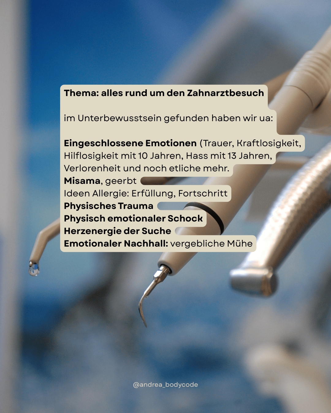 Wenn alle eingeschlossenen Emotionen und Blockaden zu diesem Thema gelöst sind, fühlt sich der Zahnarztbesuch deutlich leichter an.