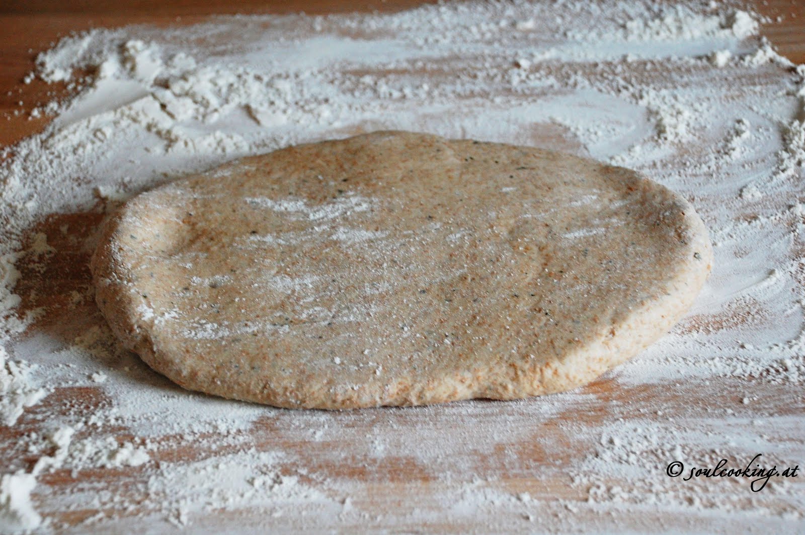 Da ich aber weder Hefe noch Germ verwende hab ich sie einfach ganz dünn ausgerollt!