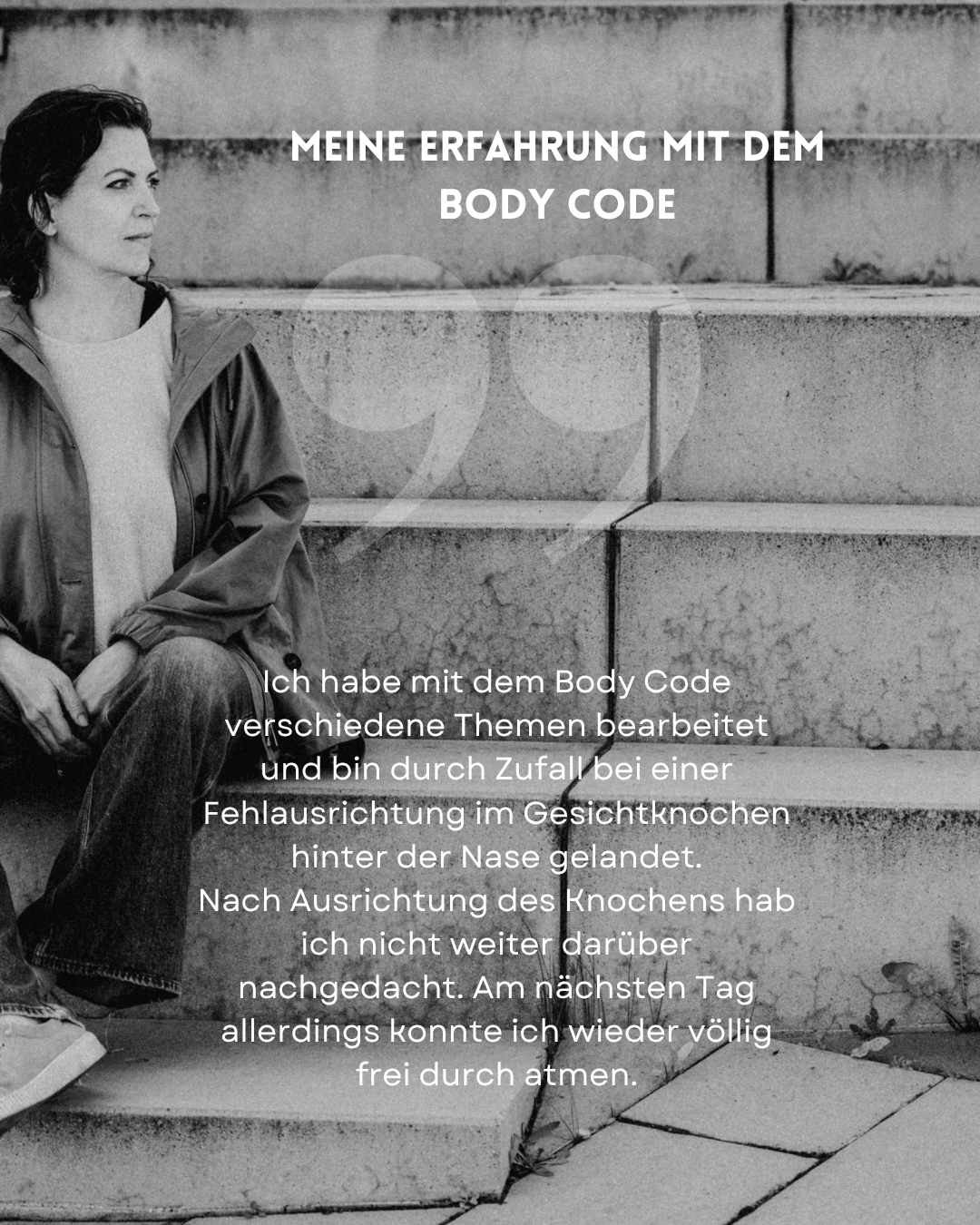 Ich habe mit dem Body Code verschiedene Themen bearbeitet und bin durch Zufall bei einer Fehlausrichtung im Gesichtknochen hinter der Nase gelandet.