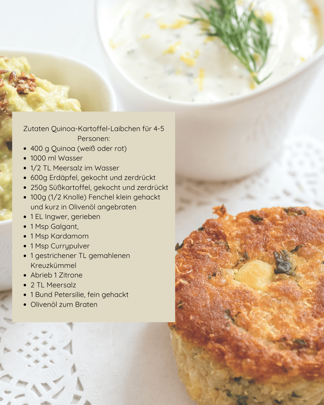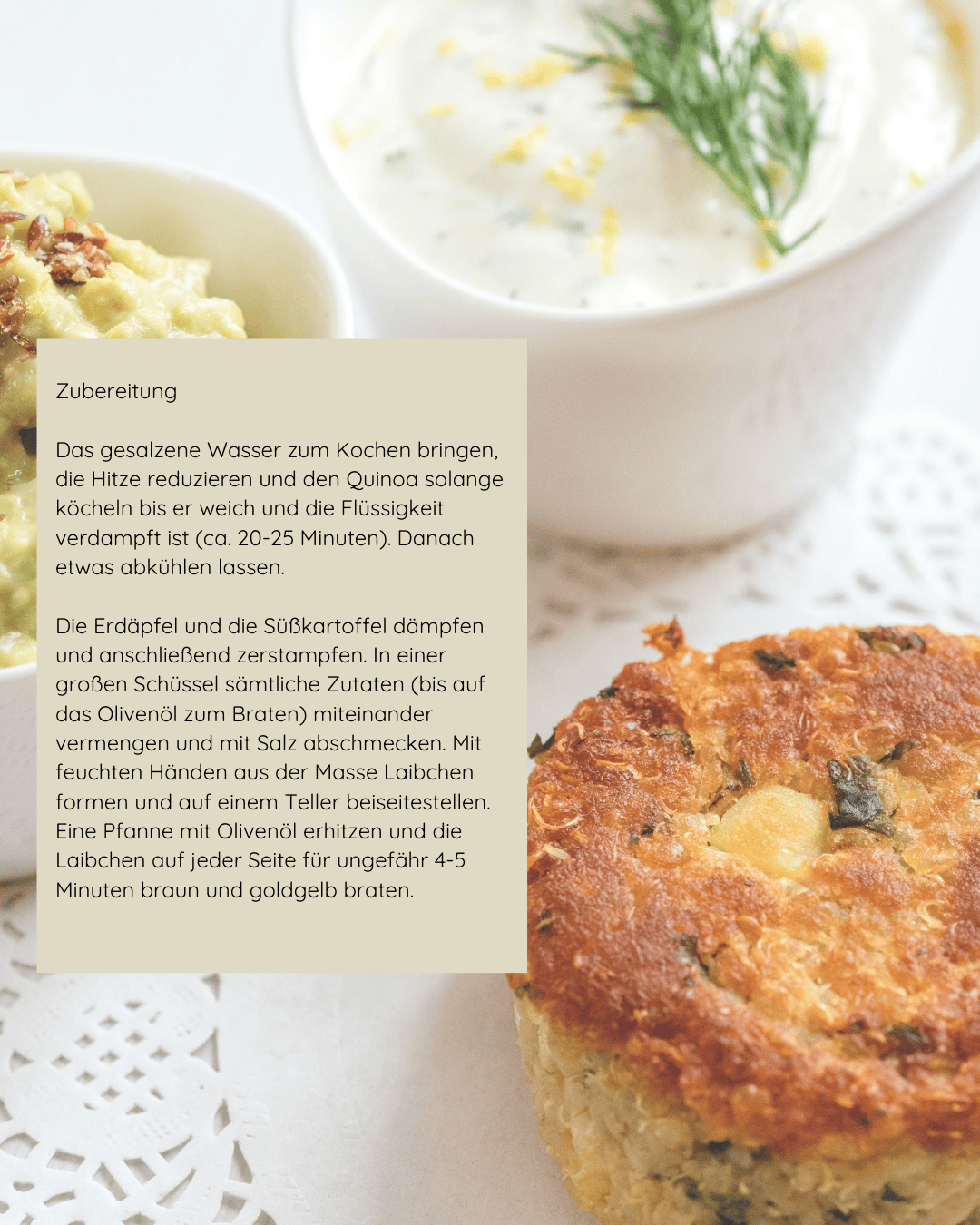 Zutaten Quinoa-Kartoffel-Laibchen für 4-5 Personen: