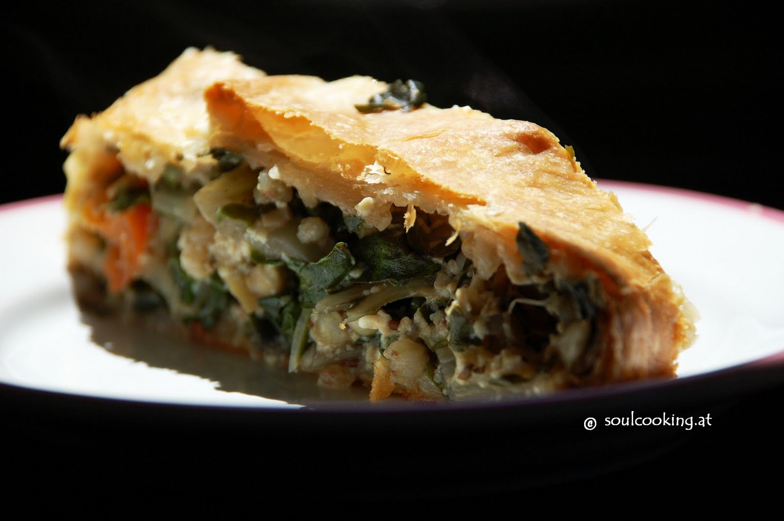 Ruccolasalat (der im Garten wuuuchert - ich liebe ihn :-)) mit Himbeeren und Schafkäse und ein Dinkel-Gemüsestrudel mit Buchweizen und Seidentofu
